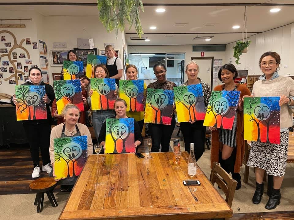 Our Paint Parties offer a fun and relaxing environment where team members can let their guard down and connect on a deeper level. By the end of the party, your team will have created a beautiful piece of art together, and more importantly, they will have built stronger relationships and fostered a sense of camaraderie.